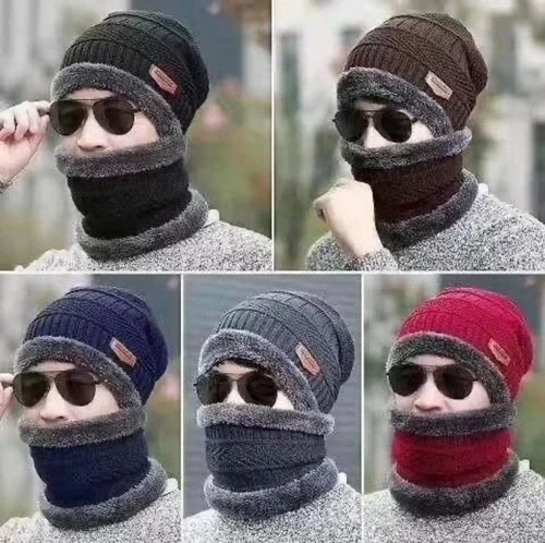 Premium Winter Cap with Neck Muffler – Soft Woolen Beanie & Neck Warmer Set for Extreme Cold